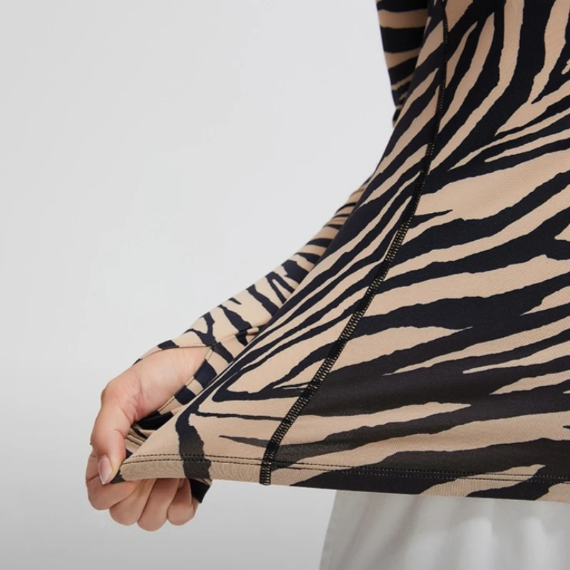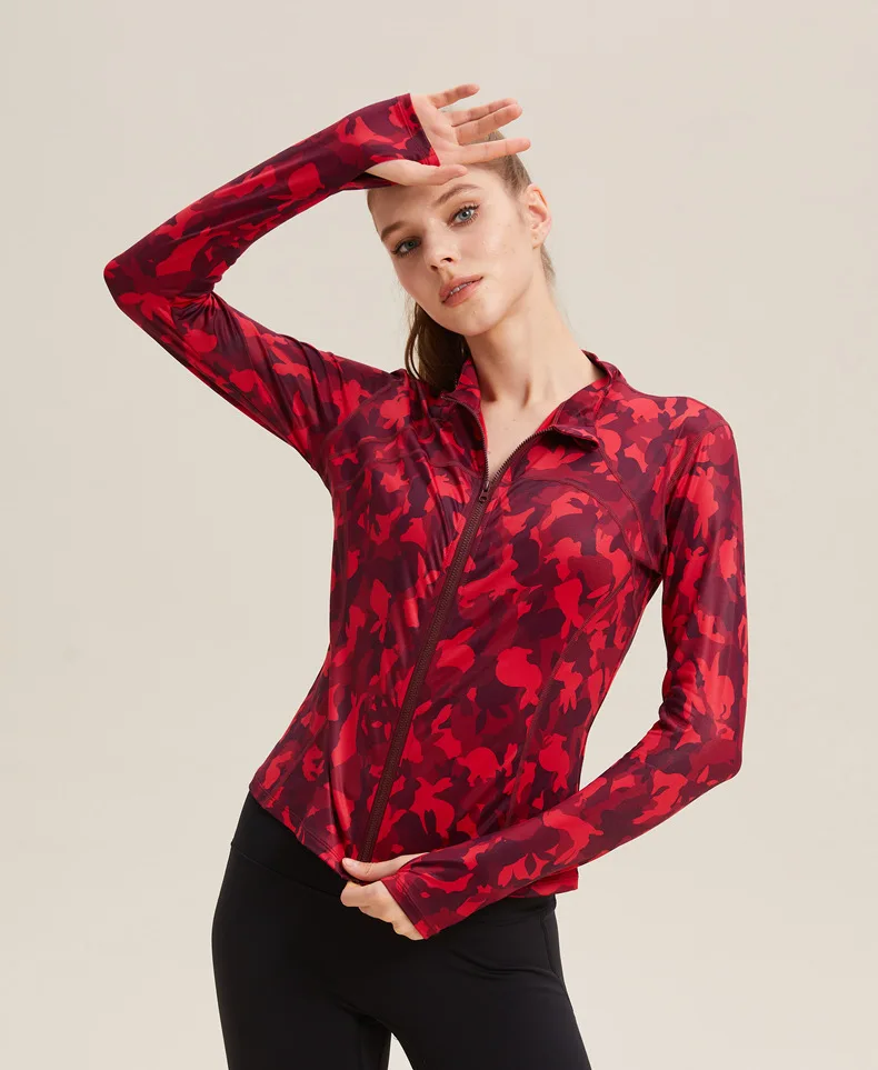 Sports jacket women zebra pattern slim long sleeve camouflage thin velvet running jacket hiking fitness cycling yoga sportswear