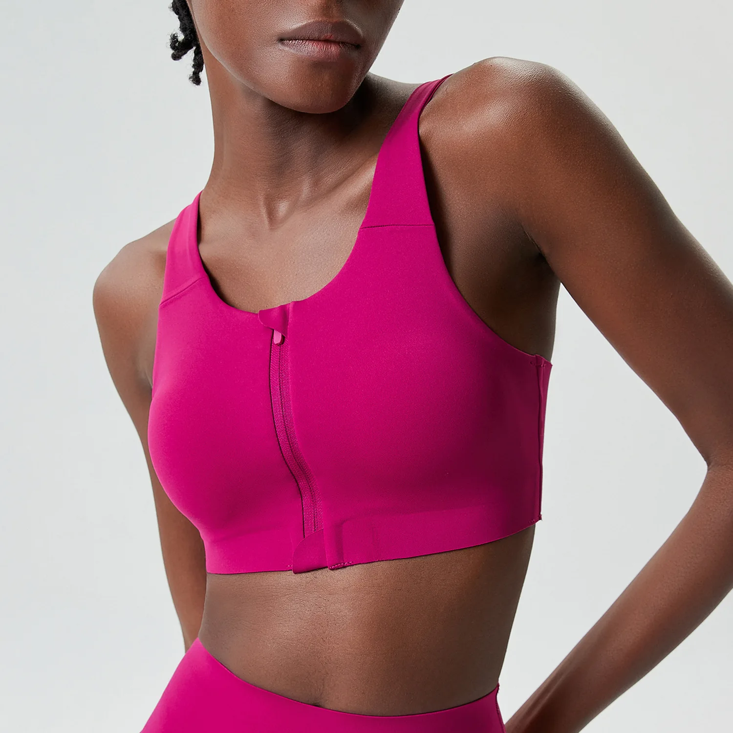 trong support shock-proof fixed cup yoga vest sports bra fitness bra liquid glue front zipper large size sports underwear women